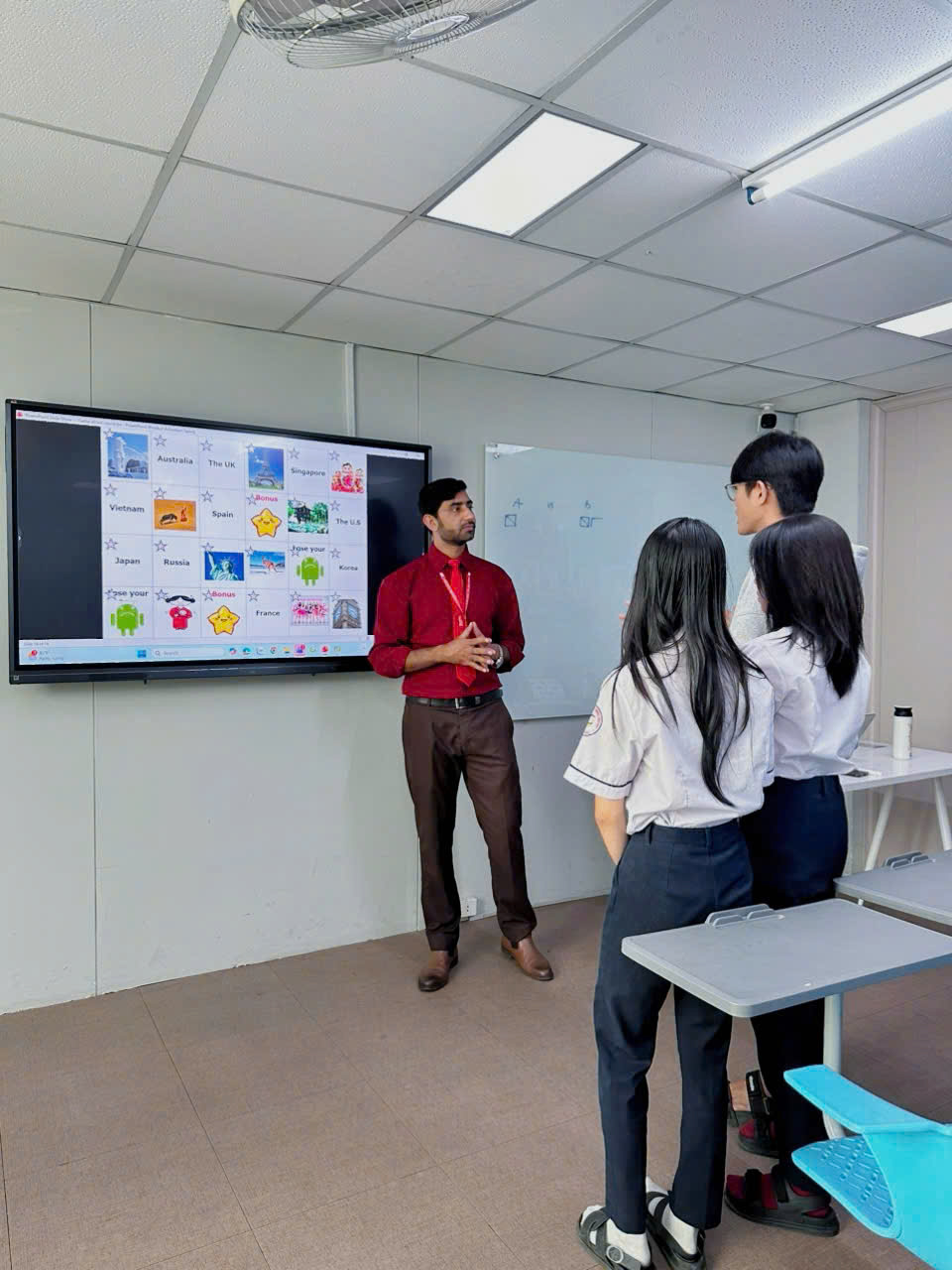 Ngay từ những phút đầu tiên, không khí lớp học đã trở nên vô cùng sôi nổi. Dưới sự dẫn dắt tận tình và phong cách giảng dạy hiện đại của các giảng viên Khoa Ngoại ngữ, các bạn học sinh đã được làm quen với bộ từ vựng tiếng Anh phong phú về các quốc gia, những biểu tượng văn hóa và đặc trưng địa lý thú vị. Cách tiếp cận trực quan sinh động giúp các bạn không chỉ nhớ từ vựng nhanh chóng mà còn thêm yêu thích việc tìm hiểu về thế giới xung quanh.