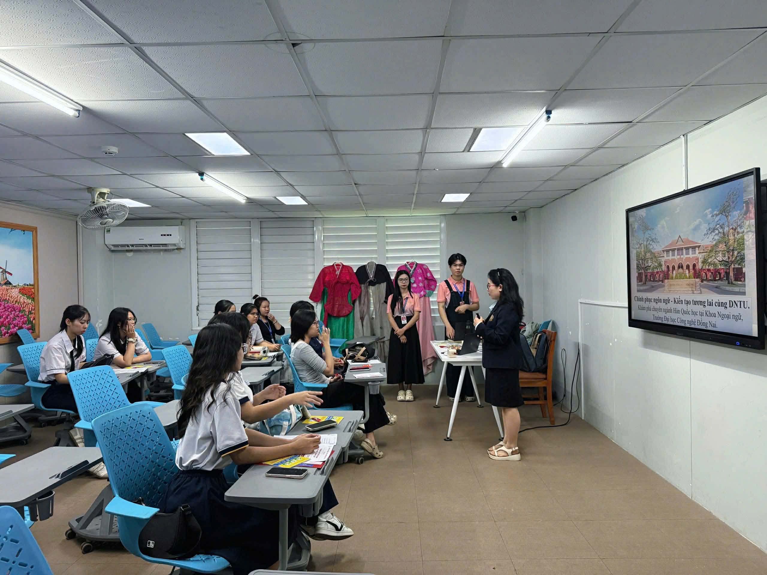 Tiếp nối thành công của các hoạt động hướng nghiệp, Trường Đại học Công nghệ Đồng Nai (DNTU) đã chào đón hàng trăm học sinh từ các trường: THPT Vĩnh Cửu, TH-THCS-THPT Lê Quý Đôn và Quyết Thắng. Ngay từ sáng sớm, khu vực trải nghiệm ngành Hàn Quốc học đã rộn ràng tiếng nhạc K-pop và sắc màu rực rỡ của những bộ Hanbok truyền thống.