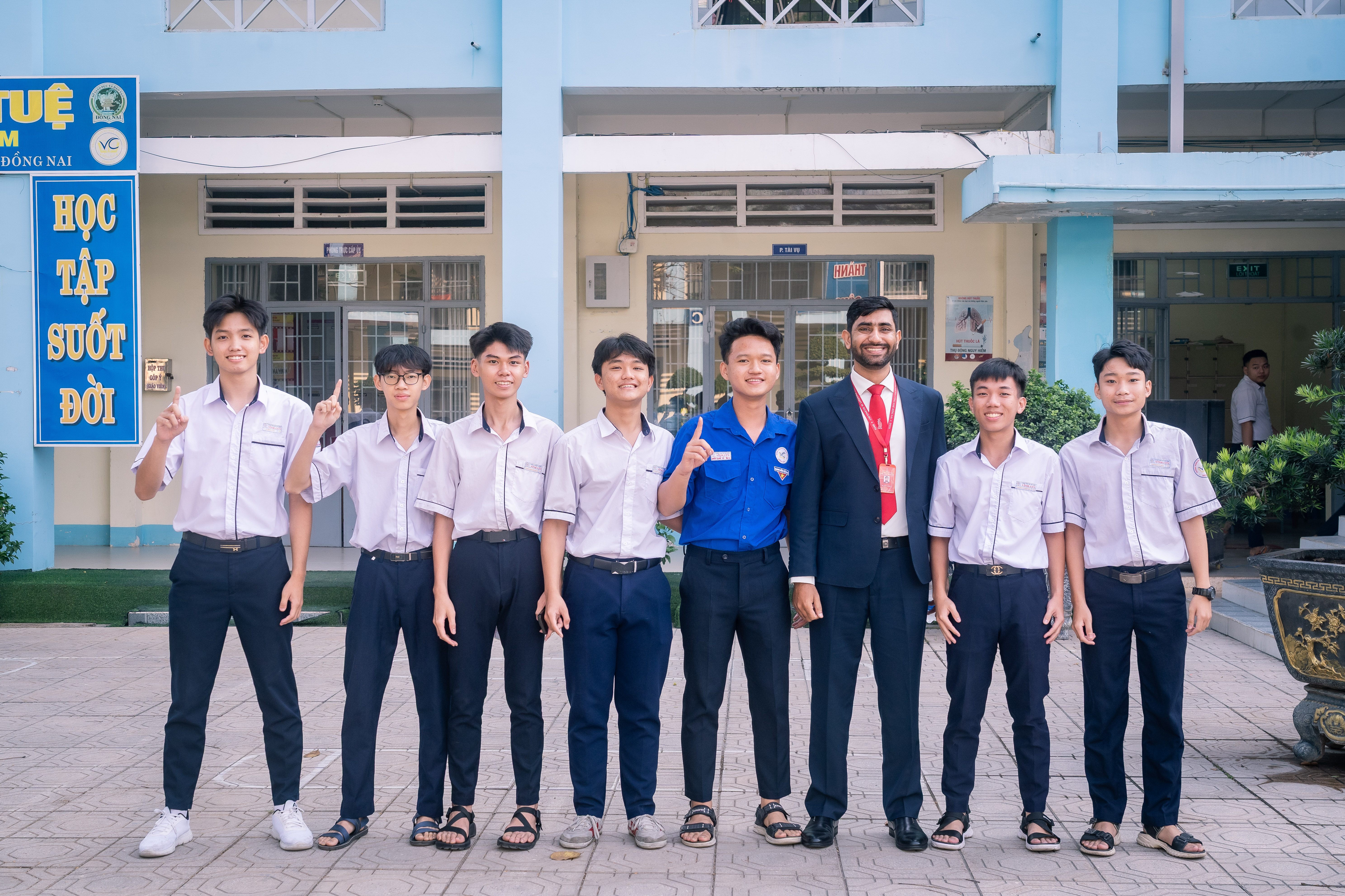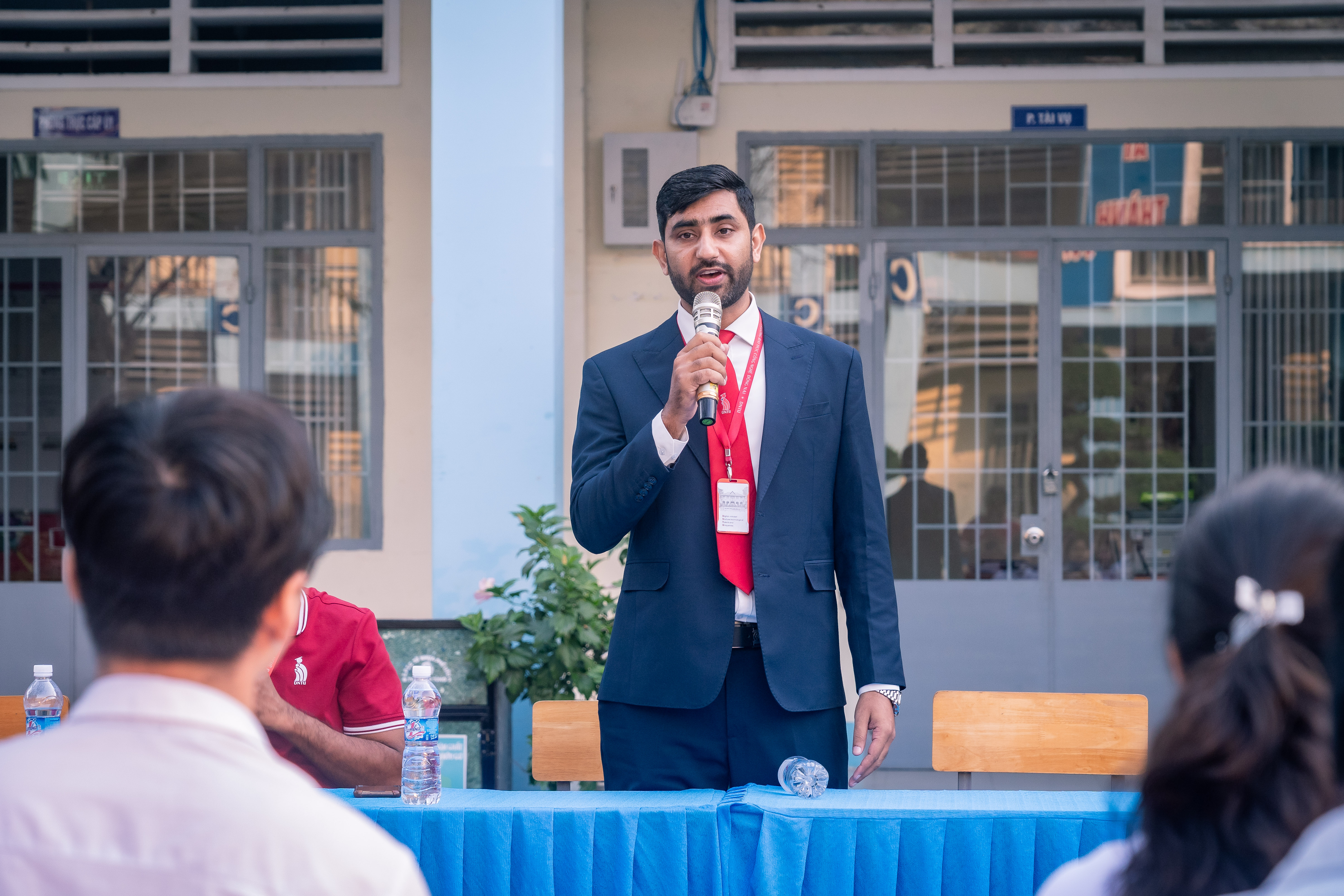 Tại buổi lễ, đại diện Khoa Ngoại ngữ, giảng viên Zafar Junaid đã giới thiệu tổng quan về Trường Đại học Công nghệ Đồng Nai, các ngành đào tạo thuộc Khoa Ngoại ngữ, phương thức xét tuyển, cùng những chính sách học bổng và hỗ trợ sinh viên dành cho thí sinh trong năm học. Phần chia sẻ đã mang đến cho học sinh cái nhìn cụ thể hơn về môi trường học tập, lộ trình đào tạo cũng như cơ hội phát triển nghề nghiệp sau khi tốt nghiệp.