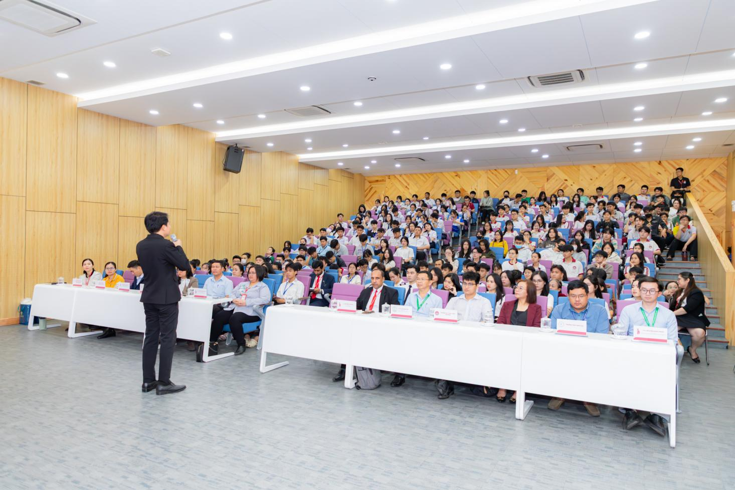Ngày 31/01/2025, chương trình tham quan trải nghiệm và Hội thảo "Cơ hội việc làm ngành hàng không" dành cho học sinh THPT đã diễn ra thành công tốt đẹp. Trong vai trò là đơn vị đồng hành chuyên môn, Khoa Ngoại ngữ đã mang đến chuỗi hoạt động học thuật và giao lưu văn hóa đặc sắc, giúp học sinh hiểu rõ tầm quan trọng của ngoại ngữ trong ngành công nghiệp dịch vụ trên không.