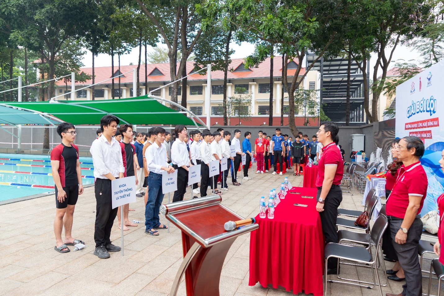 Sáng ngày 13/12/2025, tại Hồ bơi Paradise – Trường Đại học Công nghệ Đồng Nai (DNTU), Giải Bơi lội Trường Đại học Công nghệ Đồng Nai mở rộng lần I – 2025 đã chính thức diễn ra trong không khí sôi nổi, hào hứng và tràn đầy năng lượng tuổi trẻ. Đây là một trong những hoạt động thể thao tiêu biểu của nhà trường trong năm 2025, nhằm thúc đẩy phong trào rèn luyện thể chất, xây dựng đời sống tinh thần lành mạnh cho sinh viên, đồng thời tạo cầu nối giao lưu giữa DNTU với các trường trên địa bàn tỉnh Đồng Nai.